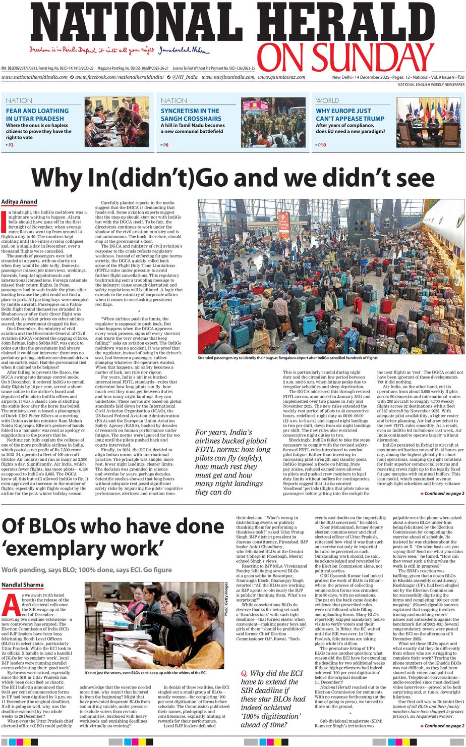 E-Paper National Herald, National Herald on Sunday - NewspaperMain Edition